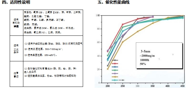 (1)可用于各種常規VOCs  廢氣,特別適用于醫藥、注塑、電子等含鹵素廢氣(CVOCs)      的催化系統;